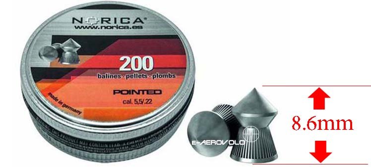 Βολίδες NORICA POINTED 5.5mm/200. Βολίδες μυτερές της NORICA με ραβδώσεις και βάρος 1.02 gr (15.74 grains), σε μεταλλικό κουτάκι των 200 τεμαχίων.