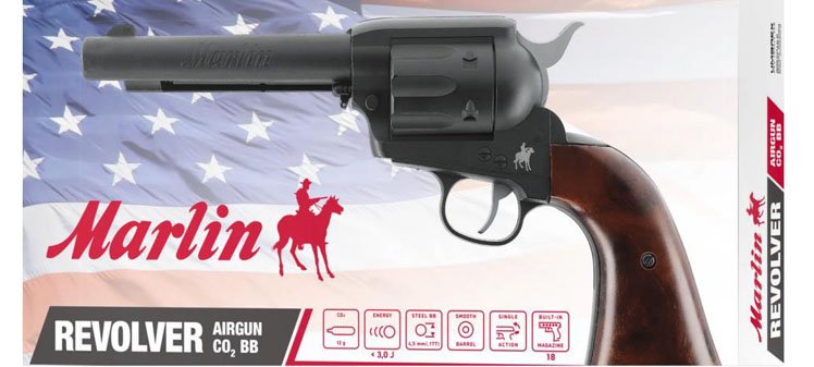 MARLIN REVOLVER 4.5mm (5.8444). Είναι αεροβόλο της UMAREX  με συνθετικό κορμό το οποίο δέχεται αμπούλα CO2 στην χειρολαβή του αεροβόλου. Ο γεμιστήρας βρίσκεται κάτω από την κάνη και από την αριστερή  πλευρά γεμίζουμε τις ατσαλένιες μπίλιες 4.5mm. Η χωρητικότητα είναι του είναι 18 ατσάλινες μπίλιες. Το MARLIN REVOLVER 4.5mm (5.8444) έχει την  ασφάλεια στην δεξιά πλευρά  του όπλου και είναι single action (κάθε φορά πριν την  βολή οπλίζεις). Δυνατό και ελαφρύ αεροβόλο ιδανικό για διασκέδαση στη σκοποβολή.