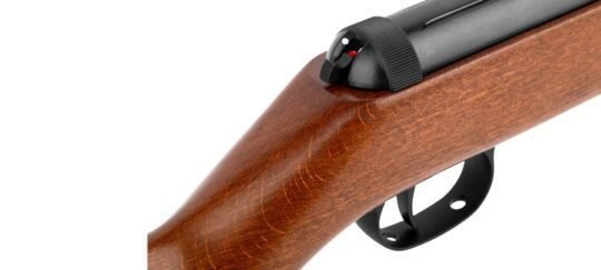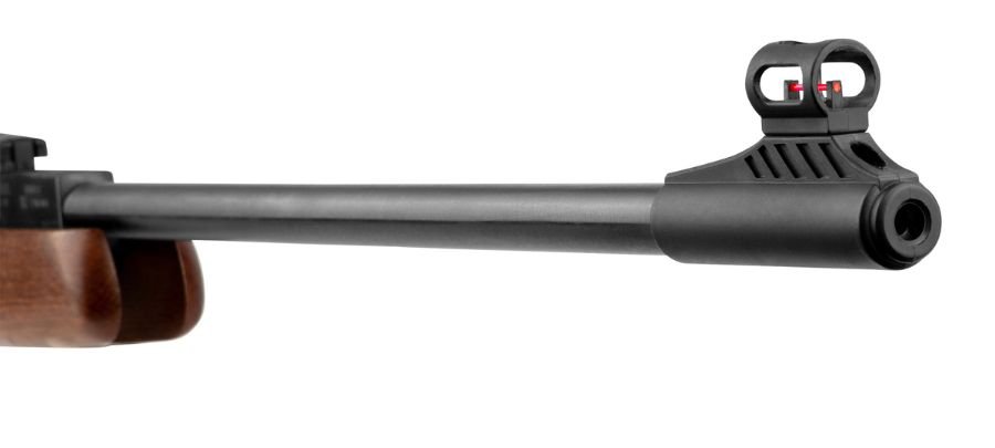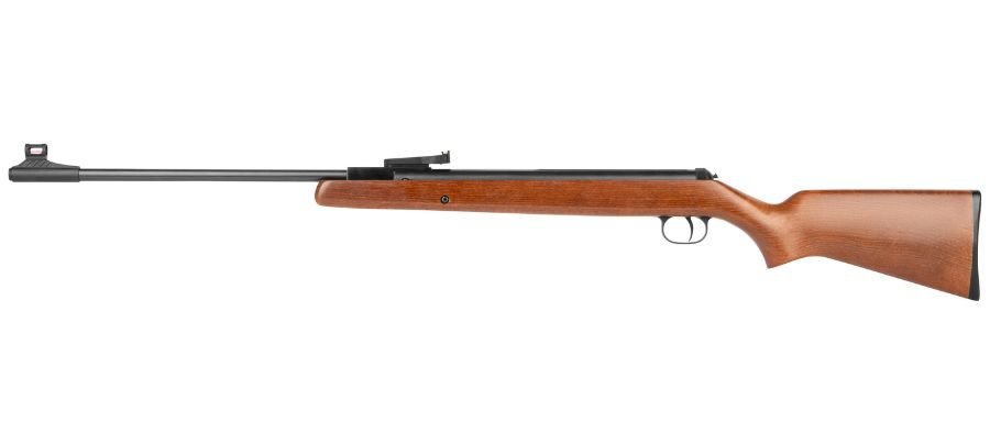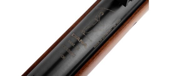 DIANA 34 Classic 4.5mm. Το Diana 34 Classic 4.5mm είναι ένα από τα πιο αναγνωρίσιμα αεροβόλα τουφέκια στην αγορά, με μακρόχρονη παρουσία και αποδεδειγμένη αξιοπιστία. Κατασκευασμένο στη Γερμανία, διακρίνεται για την ποιότητα των υλικών, την ακρίβεια στη βολή και την ανθεκτικότητά του στον χρόνο. Η λειτουργία του βασίζεται σε σύστημα σπαστής κάννης με ελατήριο, προσφέροντας σταθερή ισχύ και συνέπεια από βολή σε βολή. Το κοντάκι του είναι κατασκευασμένο από φυσικό ξύλο οξιάς με ανάγλυφες επιφάνειες για καλύτερο κράτημα, ενώ η σχεδίαση του cheekpiece και της λαβής το καθιστούν ιδιαίτερα εργονομικό. Η σκανδάλη είναι δύο σταδίων και ρυθμιζόμενη (τύπου T06), προσφέροντας εξαιρετική αίσθηση και έλεγχο. Το πίσω σκοπευτικό είναι πλήρως ρυθμιζόμενο, ενώ το μπροστινό διαθέτει προστατευτικό δακτύλιο. Το όπλο διαθέτει επίσης ράγα 11mm για τοποθέτηση διόπτρας, δίνοντας στον χρήστη τη δυνατότητα να το διαμορφώσει σύμφωνα με τις ανάγκες του.