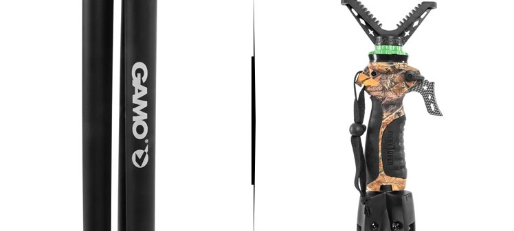 Gamo Shooting Stick Tripod Gen3. Τρίποδας στήριξης όπλου ή αεροβόλου από την ισπανική εταιρία GAMO. Είναι κατασκευασμένος από αλουμίνιο με ρυθμιζόμενα ποδαρικά από 96cm μέχρι 165cm. Διαθέτει πλήρως περιστρεφόμενη κεφαλή 360° κατασκευασμένη από πλαστικό με επίστρωση καουτσούκ για μεγαλύτερη προστασία του όπλου σας. Ο Gamo Shooting Stick Tripod Gen3 είναι ιδανικός για σταθερότητα σε μακρινές βολές αλλά και για καθαρισμό του αεροβόλου ή όπλου σας.