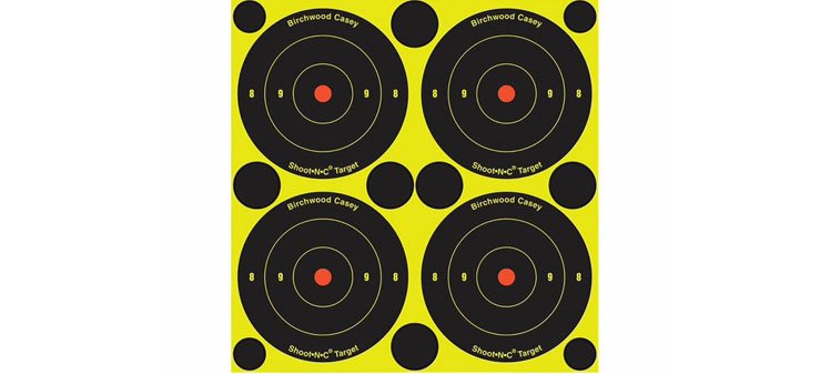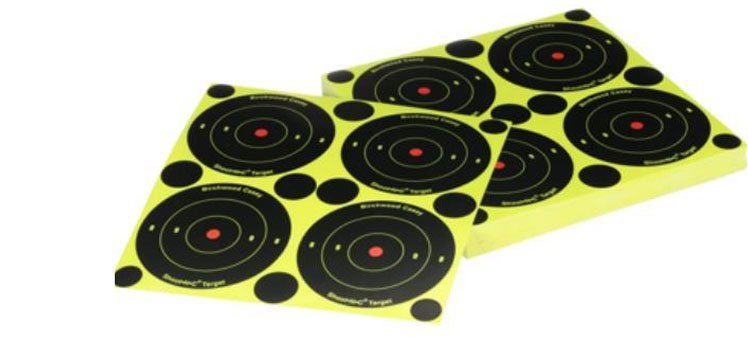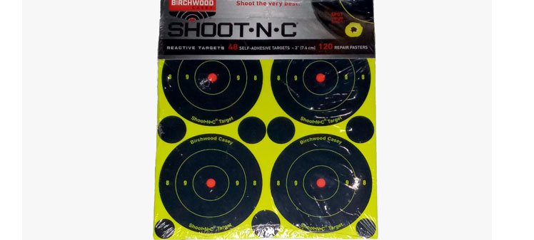 BIRCHWOOD CASEY 3” SHOOT-N-C (48 ΤΕΜ.). Αυτοκόλλητοι στόχοι Αμερικής με διάμετρο 7.6cm. Είναι φωσφορούχοι, δηλαδή στο σημείο που πυροβολούμε χρωματίζεται ώστε να βλέπουμε από μακριά σε πιο σημείο πυροβολήσαμε. Στη συσκευασία έχει 48 στόχους και 120 αυτοκόλλητα μικρά για να καλύψουμε τις τρύπες που έχουμε δημιουργήσει.