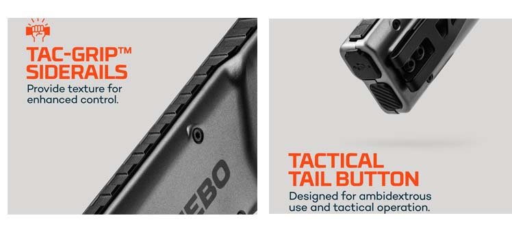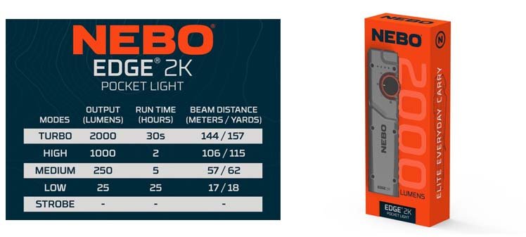 NEBO EDGE 2K (2000 Lumens). Ο EDGE 2K είναι ένας μικρόσωμος tactical φακός με μοναδική μορφή. Φορτίζει με USB-C, διαθέτει διπλά δυνατά LED, κουμπί λειτουργίας στην ουρά και δυναμικό περιστροφικό επιλογέα, ο οποίος επιτρέπει τον εύκολο έλεγχο των 5 επιλογών φωτισμού με ένα μόνο χέρι.