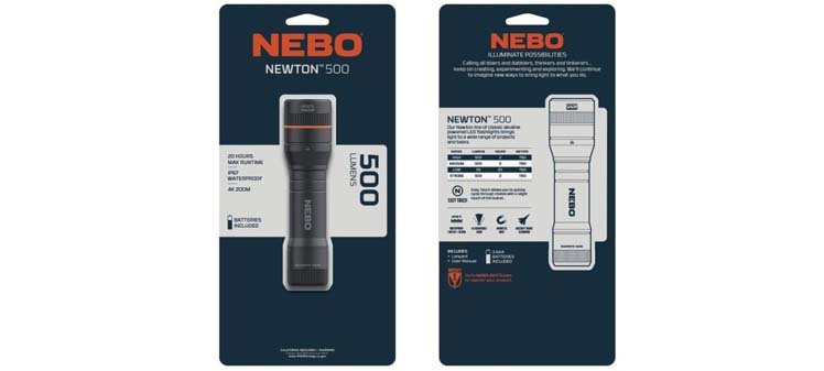 NEBO NEWTON 500 Waterproof. Ο NEWTON 500 της ΝΕΒΟ είναι ένας ισχυρός φακός χειρός που διαθέτει 4 λειτουργίες φωτισμού. Ο διακόπτης easy-touch στη βάση του φακού προσφέρει άνετη εναλλαγή μεταξύ των λειτουργιών φωτισμού και το ισχυρό LED σε αυτό τον φακό μπορεί να φωτίσει σε απόσταση μέχρι και 146 μέτρα.